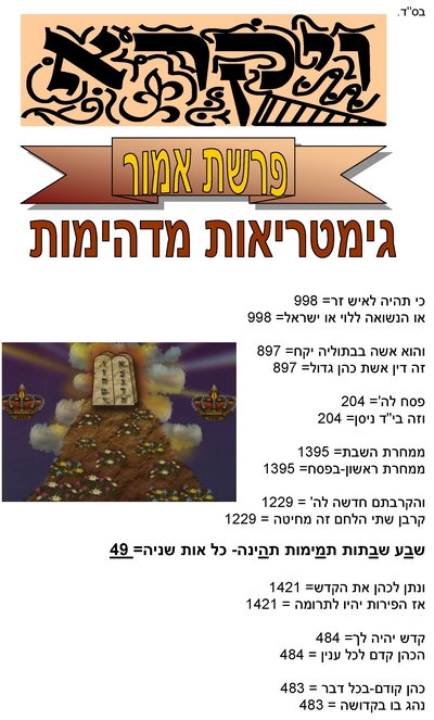 פרשת אמור - גימטריות מדהימות