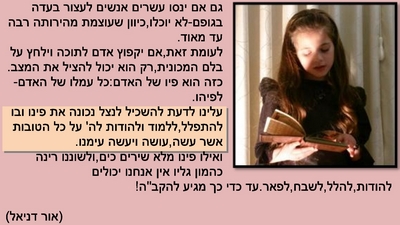 מסר זה מתאים ביותר לאדם נשוי.בחיי בנישואין אסור לאדם להשיב מתוך כעס כדי לשמור את הקשר ממחלוקת מיותרת...