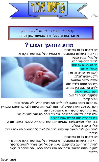 פרשת אמור - מדוע התהפך העובר ?
